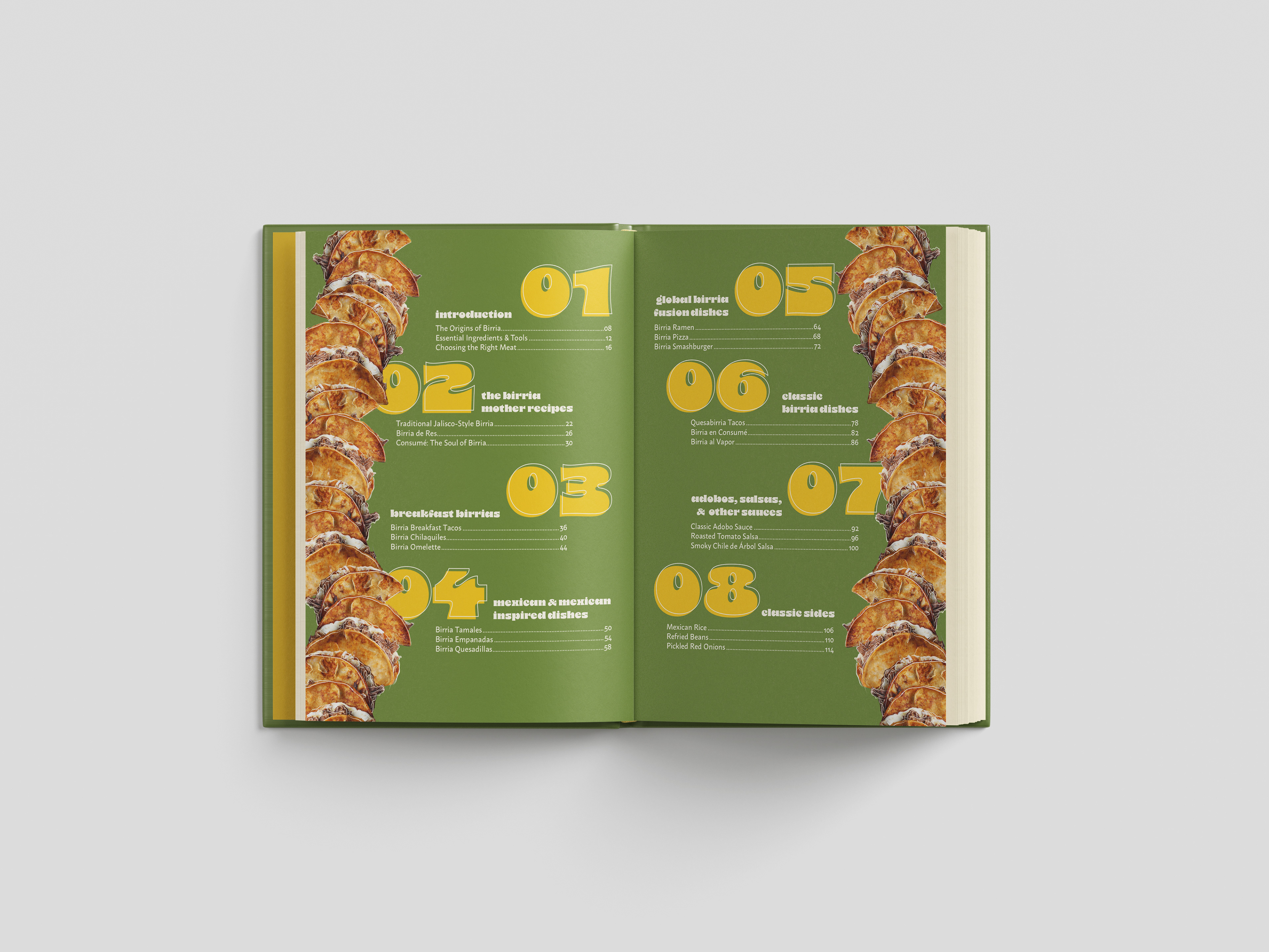 Birrias is a book redesign project developed in collaboration with Quarto Publishing Company, focused on reimagining an existing title with a younger, more contemporary aesthetic. The project explored illustration and layout design, using hand-drawn elements layered over existing photography to create a fresh visual style. Through this process, the book’s layout and visual language were reworked to feel more engaging for a new audience while maintaining the integrity of the original content. The final concept received positive feedback from the publisher.